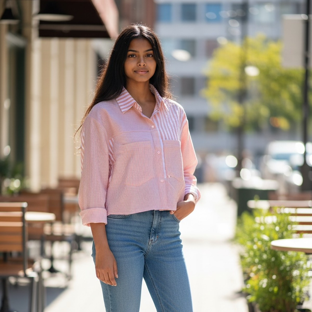 Refresh your wardrobe with this elegant Women’s Shirt made from premium pure cotton fabric, offering softness, breathability, and all-day comfort. The comfortable fit ensures ease of movement while maintaining a stylish and polished look. Its attractive pink and white color combination adds a fresh and modern touch to your outfit. Perfect for casual wear, workdays, or weekend outings, this versatile shirt pairs beautifully with jeans, trousers, or skirts. Designed for both comfort and style, it is a great addition to any modern wardrobe.